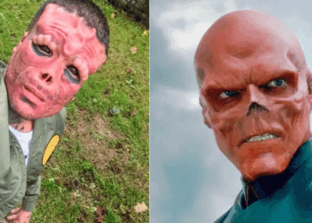 En mand med blæk sorte øjne, et rødt tatoveret ansigt, ar som kæbelinjer og ikke mere næse eller ørerne. Nej,...