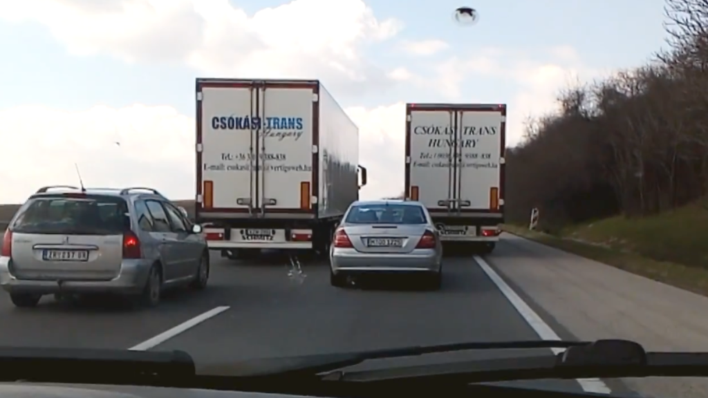 Med vel-timede manøvrer sørgede chaufførerne for, at Mercedes’en ikke kunne komme længere over nødsporet. Uden at køre farligt eller handle aggressivt, gjorde de klart, at asocial adfærd på vejen ikke forbliver uopdaget.